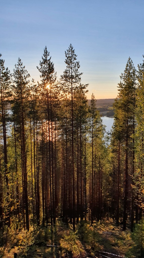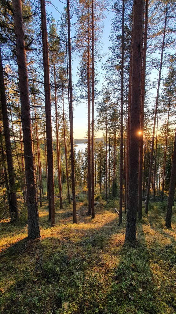 Multamäkeen paistaa syksyinen ilta-aurinko aivan ihanasti! Koko paikka huokui rauhallista, lämmintä ja mukavaa tunnelmaa. Mäen laelle päästyämme jätimme tavaramme laavulle ja lähdimme tutkimaan ympäristöä. Kipusimme portaat ylös ja alas ja kävimme lähempänä rantaa.