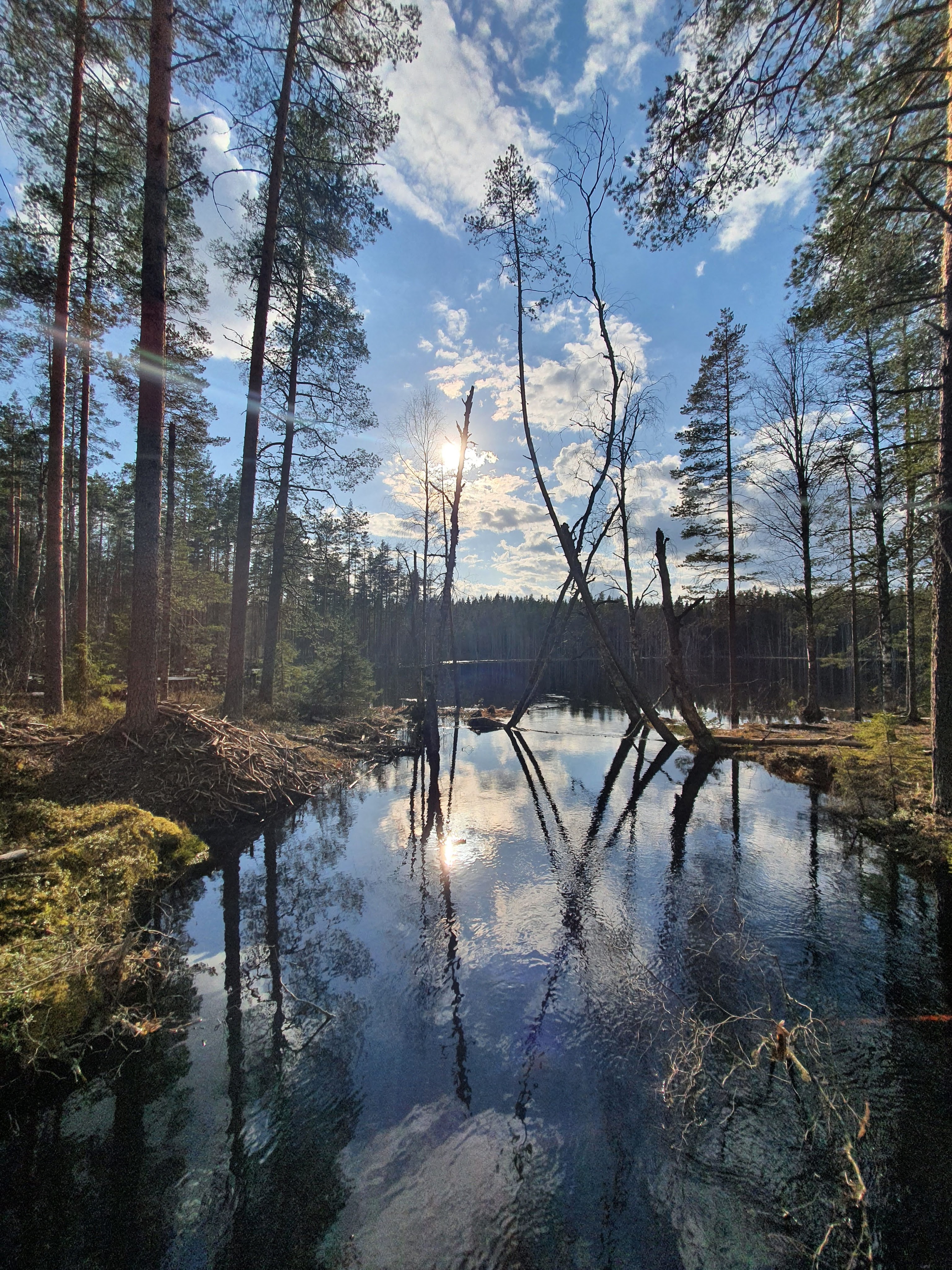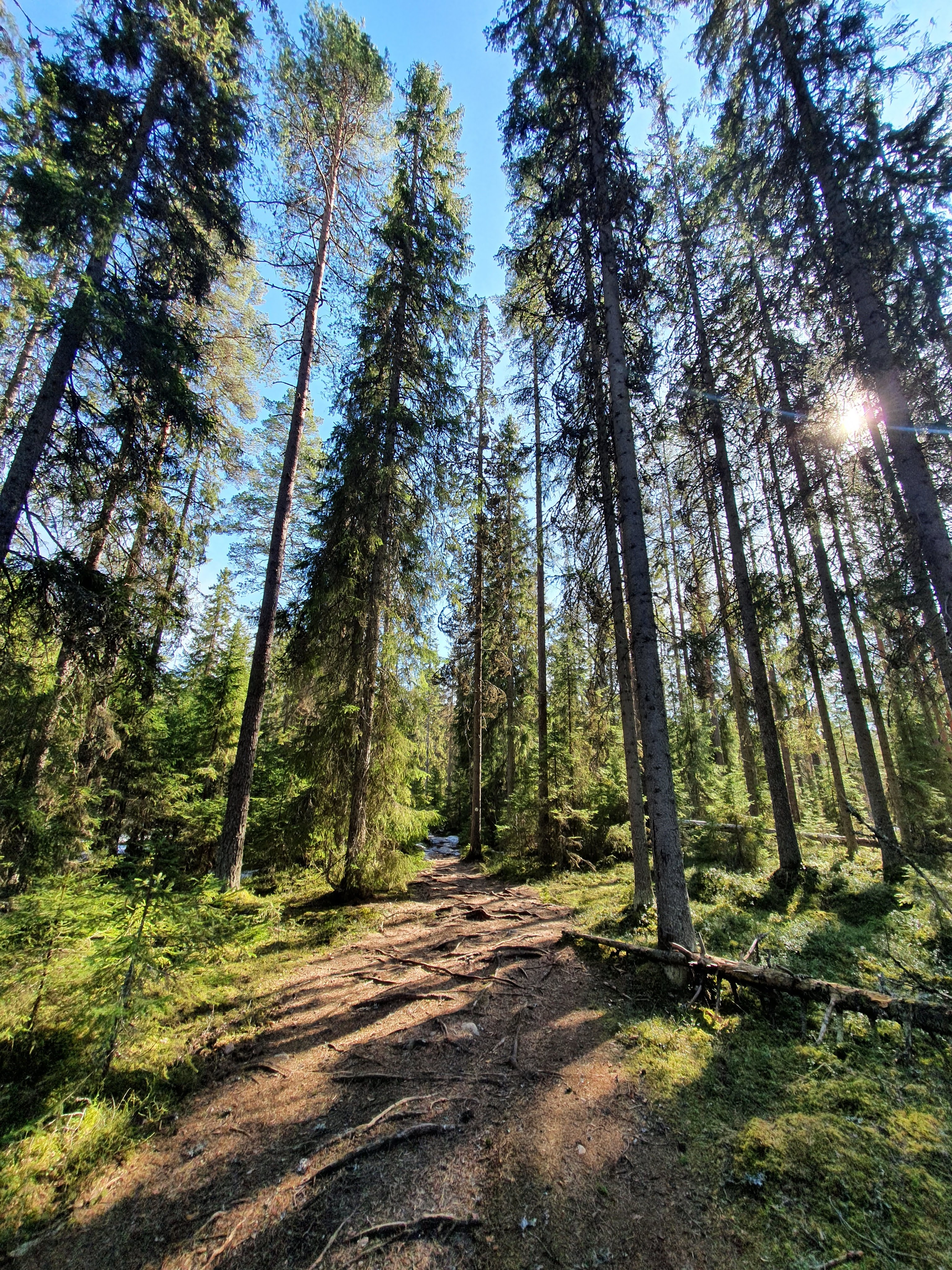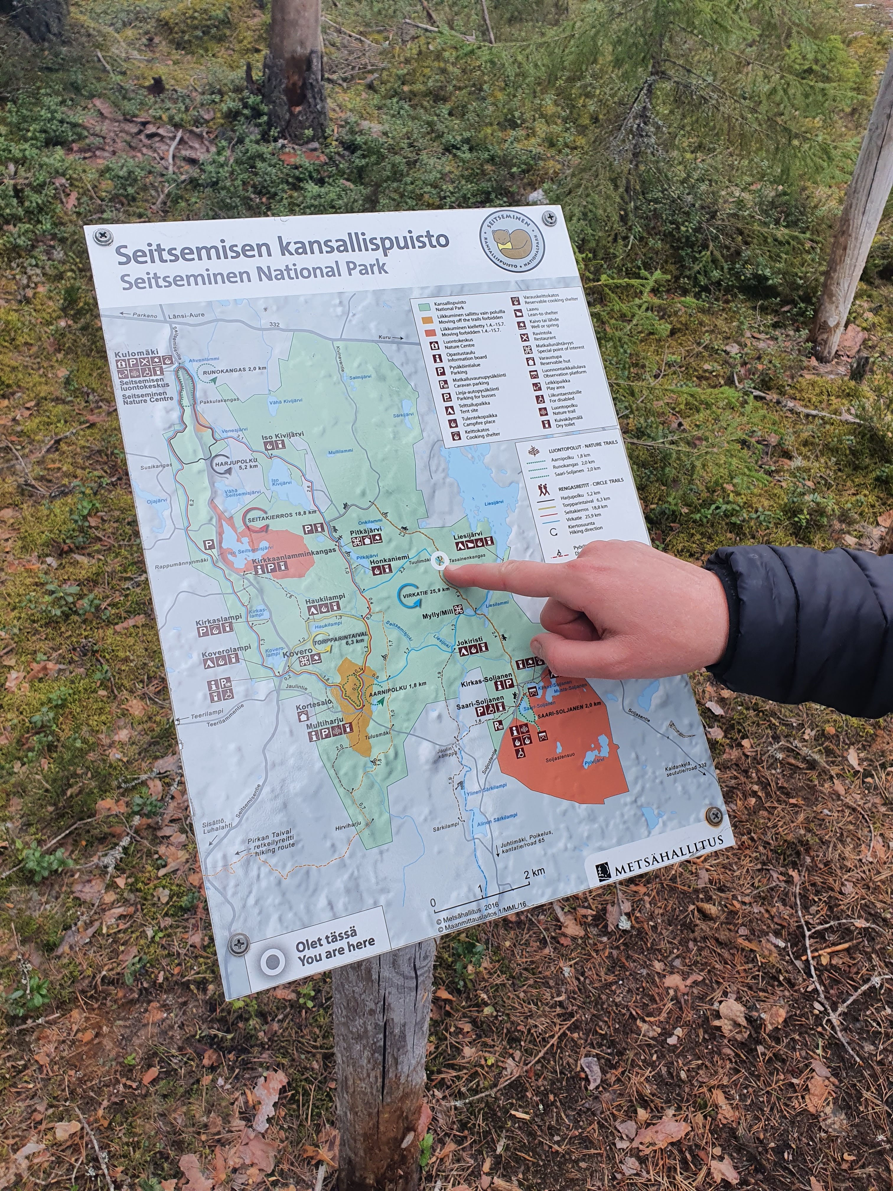 Kävelimme pehmeitä aarniometsän polkuja pitkin. Ympärillä puut seisoivat ylhäässä hiljaisuudessaan. Tuuli humisi hiljaa ja linnut visersivät. Ympäristö imi kaikki ylimääräiset äänet, edes kengistämme ei kuulunut mitään. Siinäpä oli mukavat pari kilometriä Koverolta Aarnipolun loppuun. Näiden kilometrien jälkeen lähdettiin tarpomaan Virkatietä. Virkatie oli tähän aikaan vuodesta aika karseassa kunnossa. Jäätä, vettä ja sohjoa oli kaikkialla. Inhottavin kaikista oli ehkä kuitenkin jäiset pitkospuut ja kohdat, missä pitkospuut olivat remontissa. Elli pähkäili, että Virkatie saa varmasti nimensä koiran virasta.