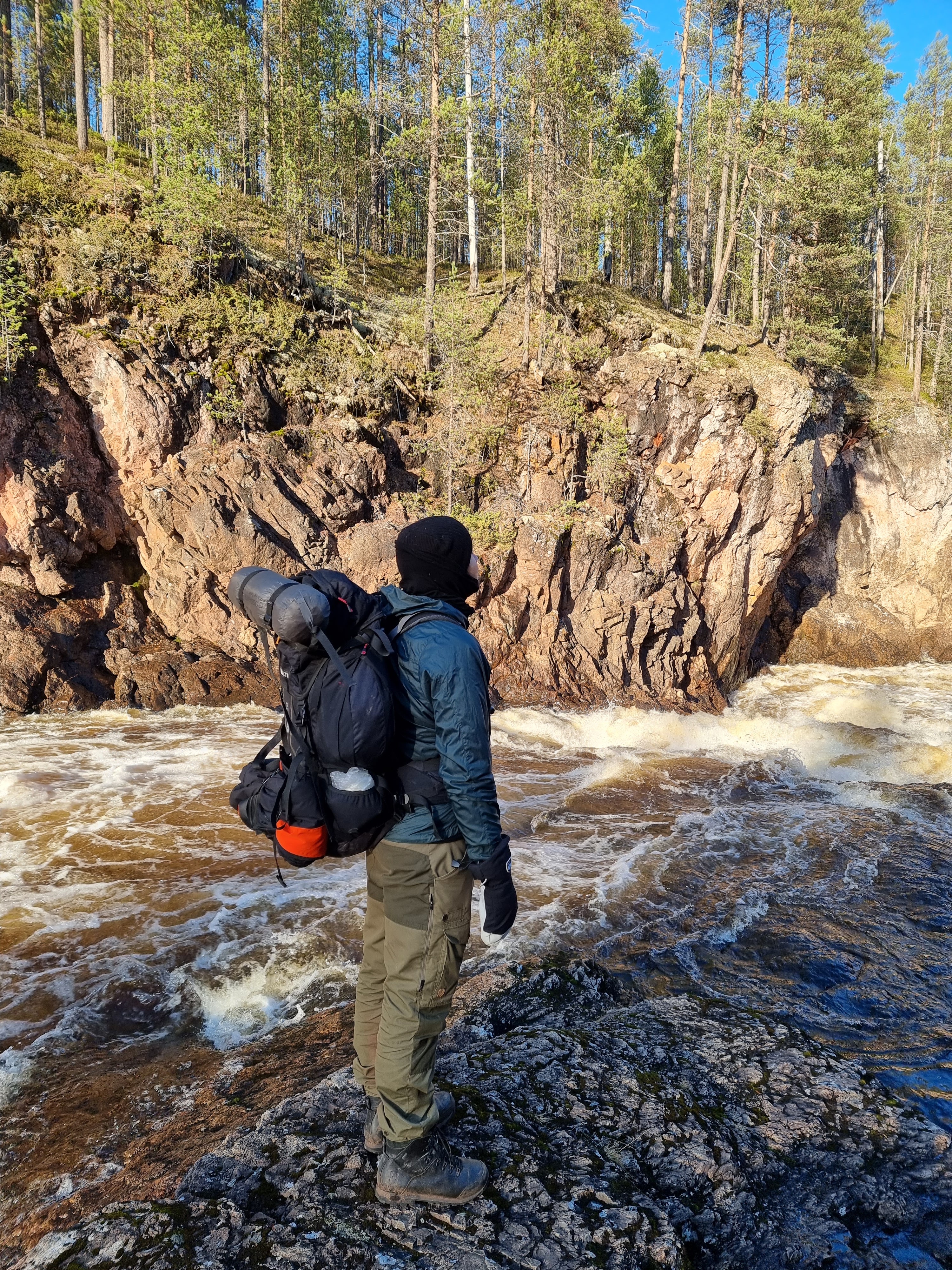 Seitsemän kilometrin kuluttua olimme perillä illan esimmäisellä yösijalla, Perttumakosken pauhavalla laavulla. Laitoimme yösijat laavulle ja nukahdimme tyytyväisinä kuunnellen kosken kuohua, joka peitti kaiken muun alleen. Yön saimme viettää ihan kahdestaan, vaikka henkinen valmistautuminen ihmispaljouteen oli tehty jo reittiä päättäessä.