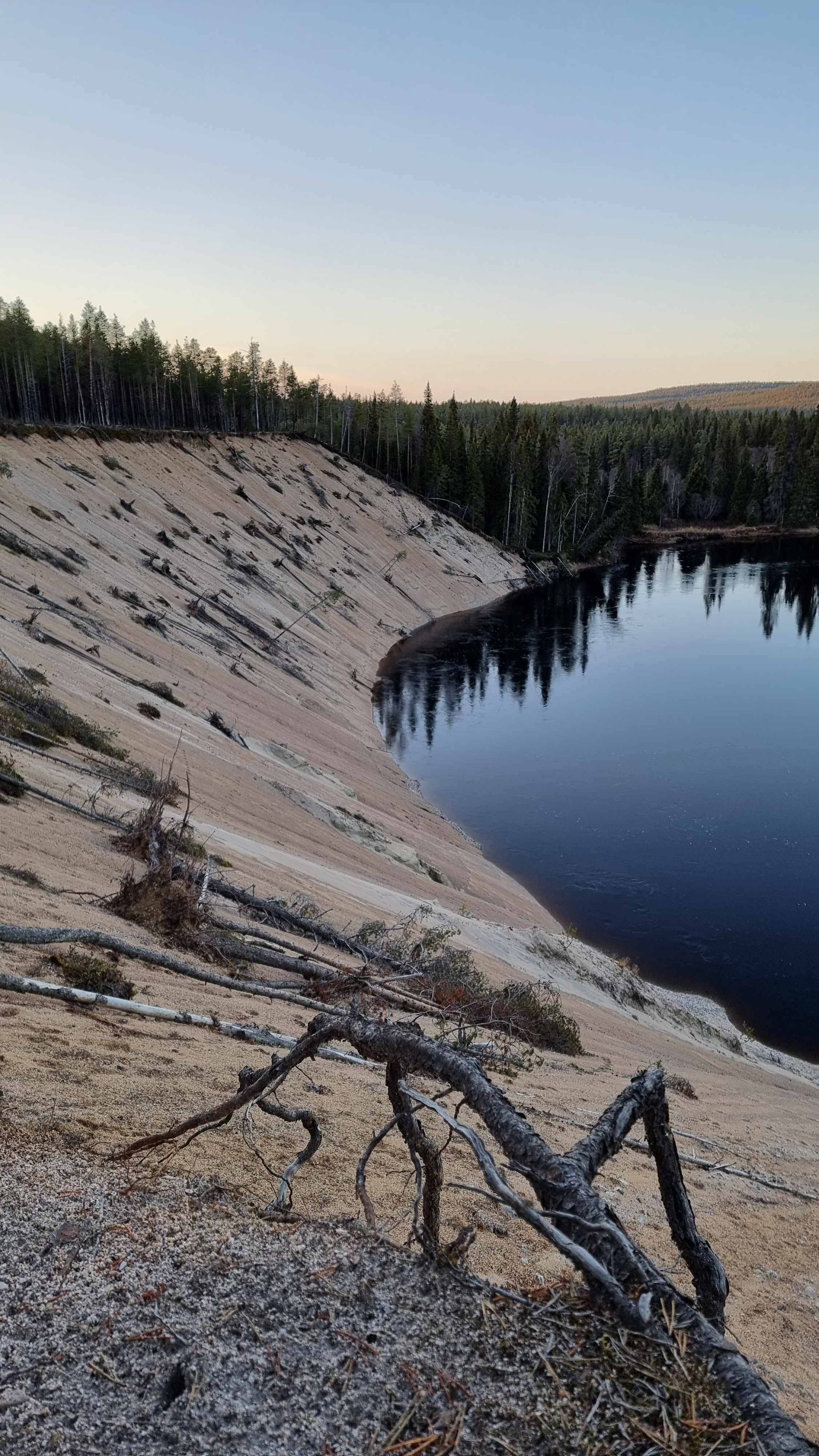 24km matka ei ajatuksena tunnu kovin pitkältä, mutta jossakin vaiheessa matkanteko alkaa aina puuduttaa kilsoista huolimatta. Ansakämpän kohdalla sain pienen nuupahtamisen ja jalkojakin särki. Pidimme lounastauon, jonka jälkeen otin vaellussauvat helpottamaan kävelyä. Se toimi ja jalkakipu hellitti sen verran, että oli taas mukava tallustaa. Olin tälle reissulle ottanut paljasjalkapolkujuoksukengät ekaa kertaa käyttöön, joten jalkakivut oli odotettavissa. Loppumatka taittui mukavasti vaellussaivojen kanssa ja Jussinkämpälle saavuttuamme olimme jo ohittaneet Karhunkierroksen puolivälin. Illalla tunsi pakkasen kiristyvän. Taivas selkeni. Illan viimeisellä puhteella eli yhidstetyllä vedenhakureissulla ja hammaspesulla katsoimme kirkasta tähtien täplittämää taivasta ja sen heijastusta tyynestä järven pinnasta. Jaoimme tuvan vain yhden seurueen kanssa ja vietimme rauhaisan ja lämpimän yön.