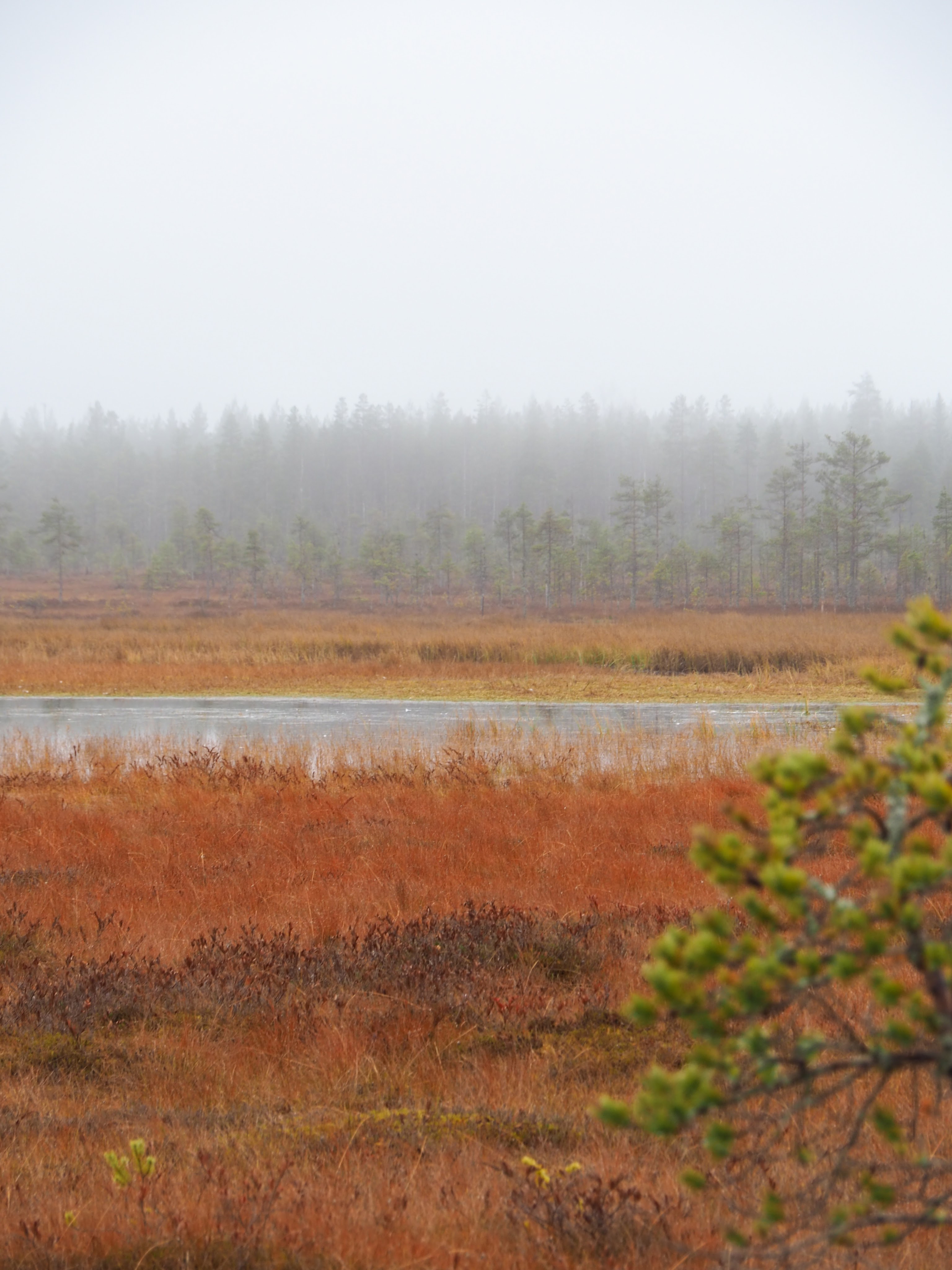 Päivä oli sumuinen, mikä sopi oivallisesti kauniiseen suomaisemaan. Syksyn värit tulivat loistoonsa suon kasvustosssa. Ilmassa oli syksyn kirpeyttä ja sumuun peittyvässä maisemassa jotain taianomaista.