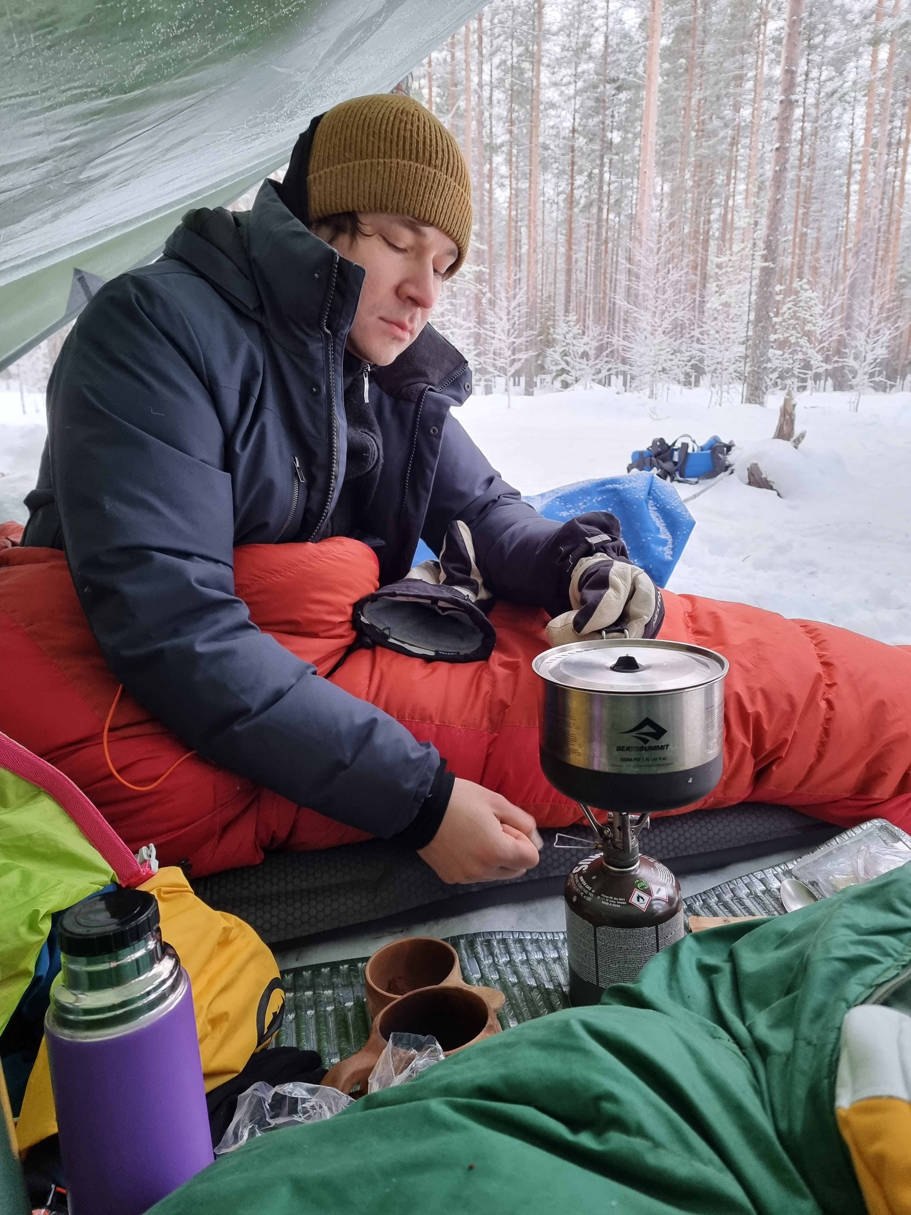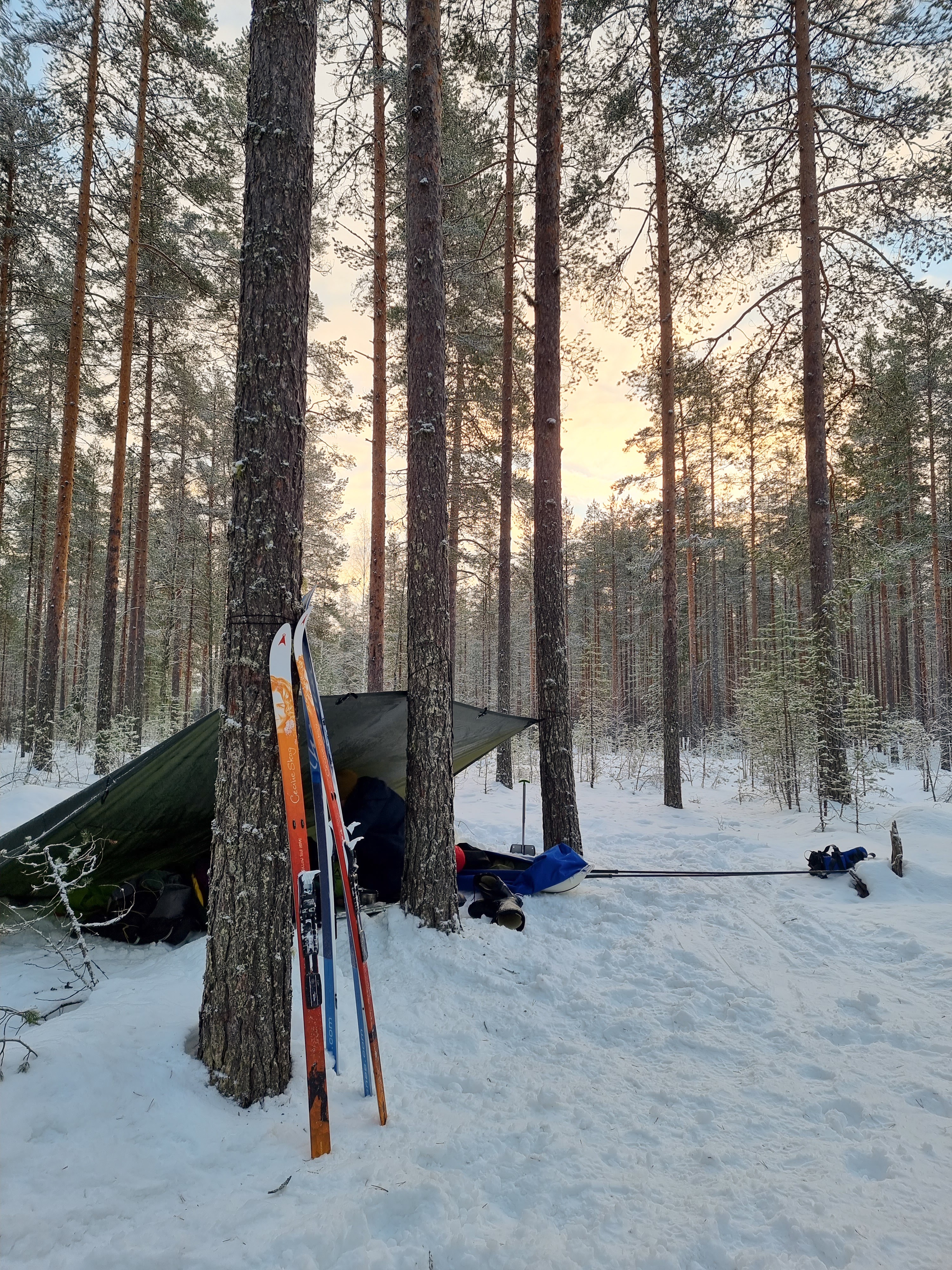Se on lause, jota hoen aina itselleni kun illalla on epämukavaa. Se on myös lause, joka on pitänyt tähän mennessä aina paikkaansa. Niin oli myös tällä kertaa. Aamulla heräsin onnessani ihanaan pakkasaamuun ja aamuauringon hehkuun! Aamut makuupussissa on parhaita aamuna Olet ulkona, mutta ihanassa lämpimässä makuupussissa. Luonto ja kaikki on siinä. Ei ole kiire mihinkään ja kahvia saa juoda omassa ihanassa pesässä.