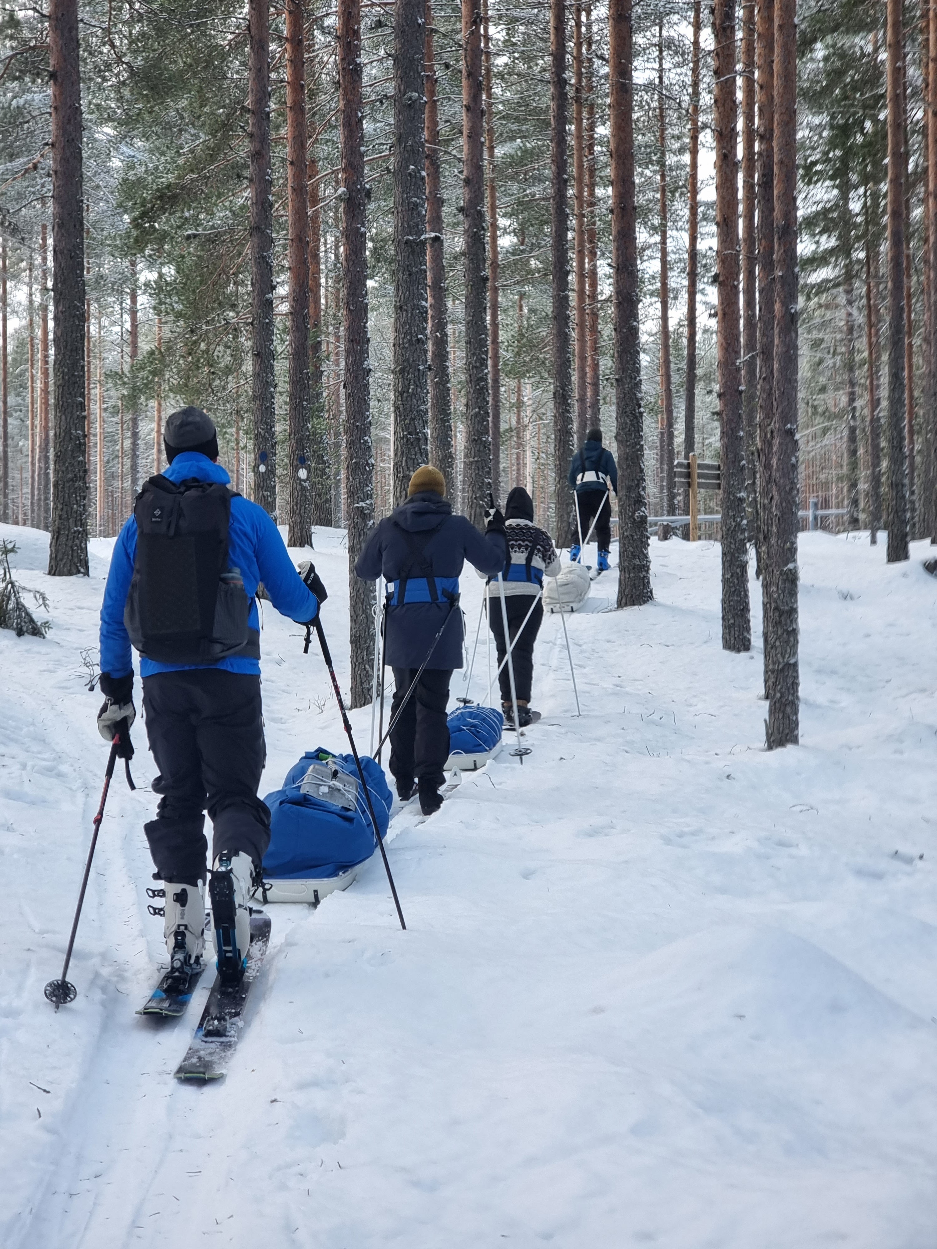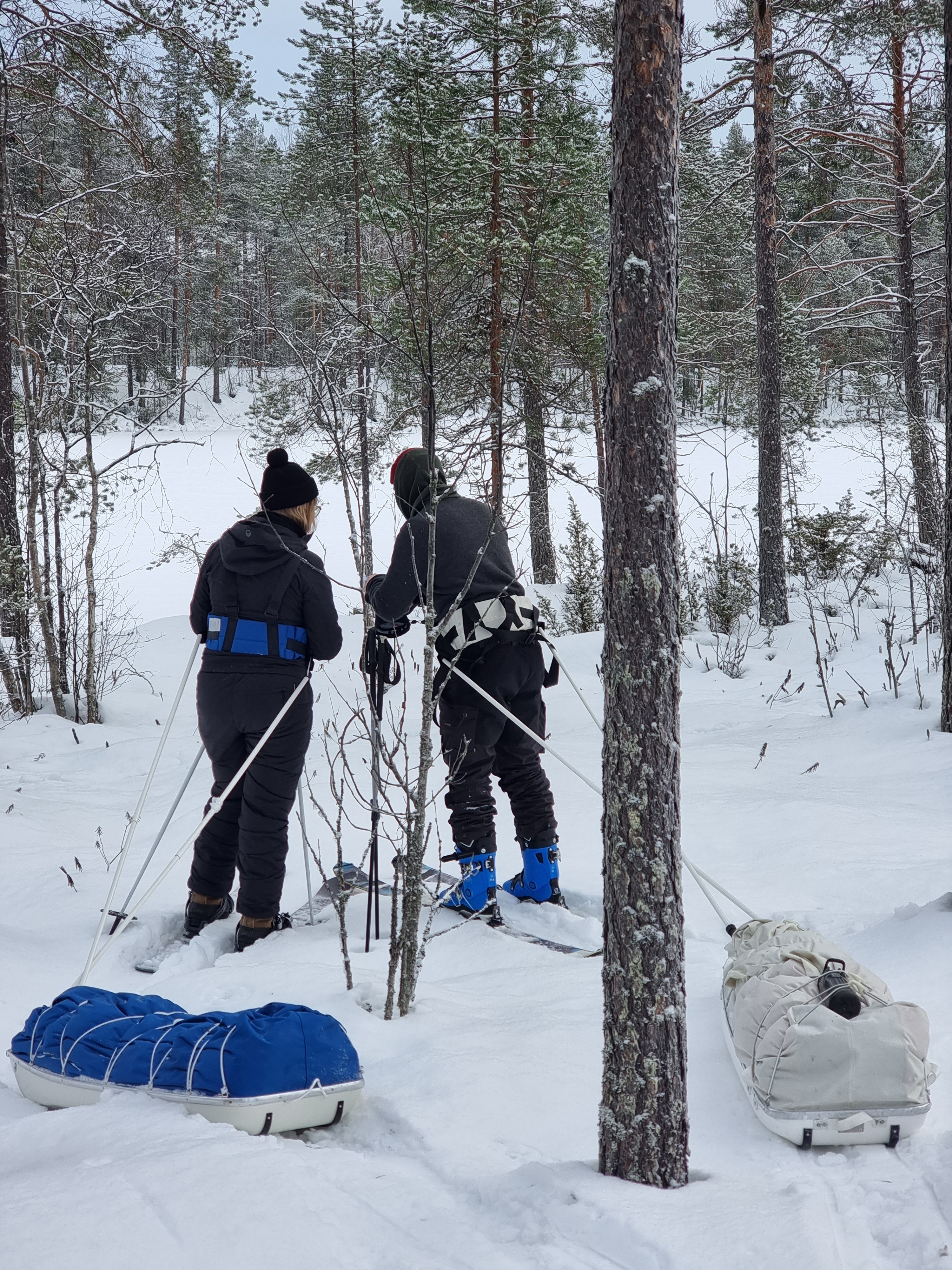 En keksi mitään parempaa, mitä ihminen voisi elämässään tehdä kuin hiihdellä ahkion ja ystävien kanssa lumisessa metsässä. Naurattaa aina kun mietin tätä reissua. Parasta vastapainoa harmaaseen ja pimeään alkutalven arkeen. Ja mikä hassua, kyseessä oli ihan lyhyt reissu jonka voisi mikä tahansa viikonloppu toteuttaa ilman kummempia suunnitelmia. Tällaisena kirpeänä marraskuisena pakkaspäivänä haaveilen, että tulisipa pian tarpeeksi lunta!