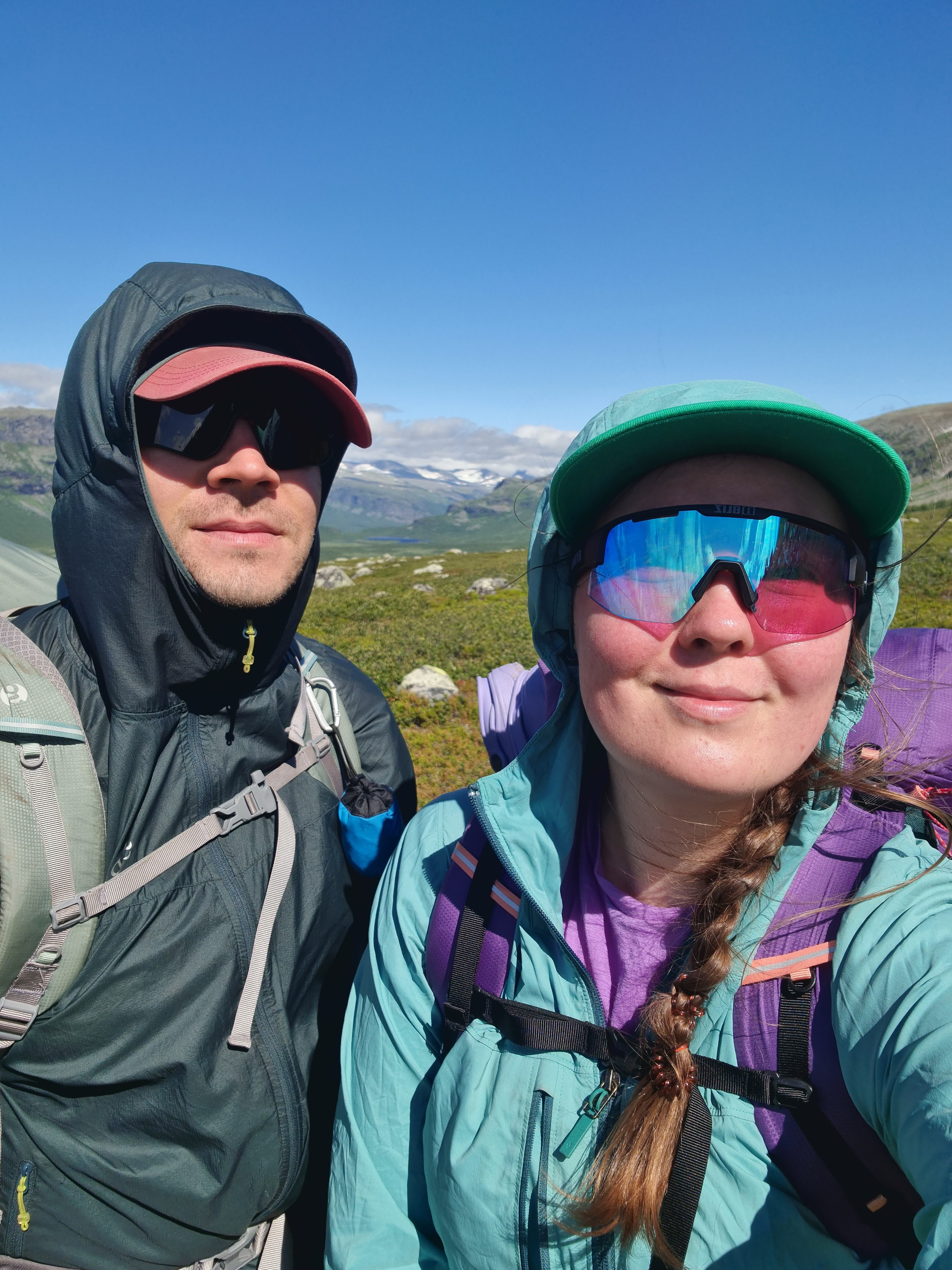 Tämä oli kuudes aamu, se samainen aamu josta tarinamme alkoi. Juuri sellainen täydellinen vaellusaamu, mitä ihminen tarvitsee. Lähdimme matkaan innoikkaina, mutta myös haikeina. Päivän lopuksi sukeltaisimme syvälle laaksoon sääskien syötäviksi, emmekä koko reissulla nousisi enää samoihin korkeuksiin. Samalla laskeutuisimme alas Sarekin kansallispuistosta.